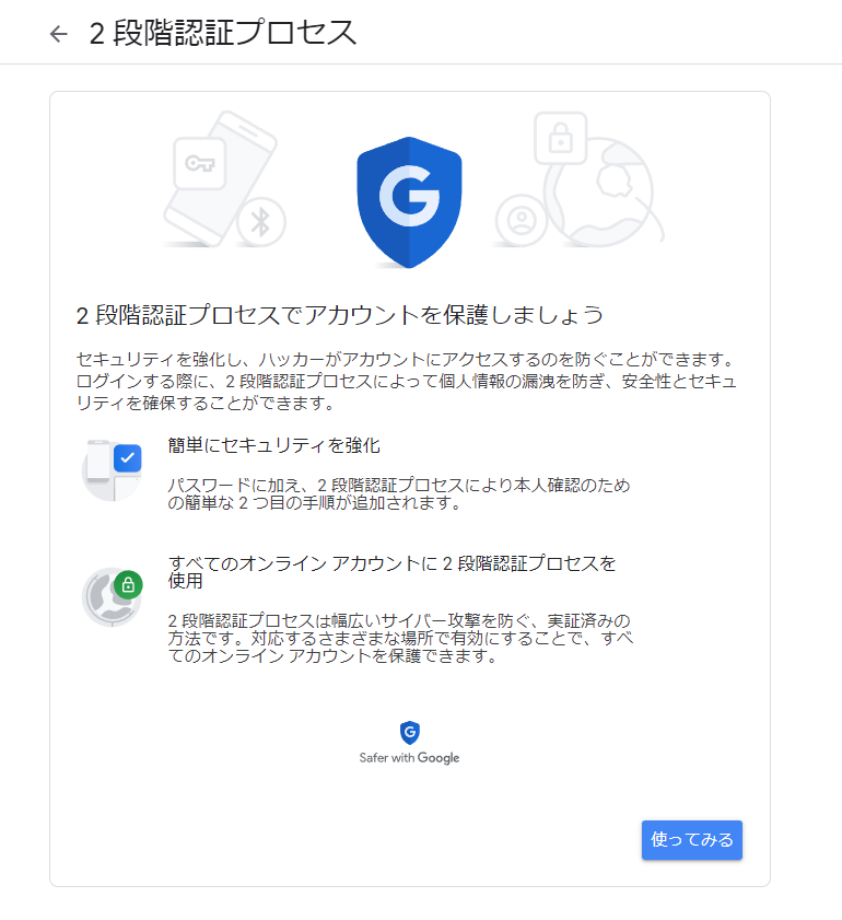 Googleの2段階認証プロセスが無効になっていますと表示されますが、どうすればよい?