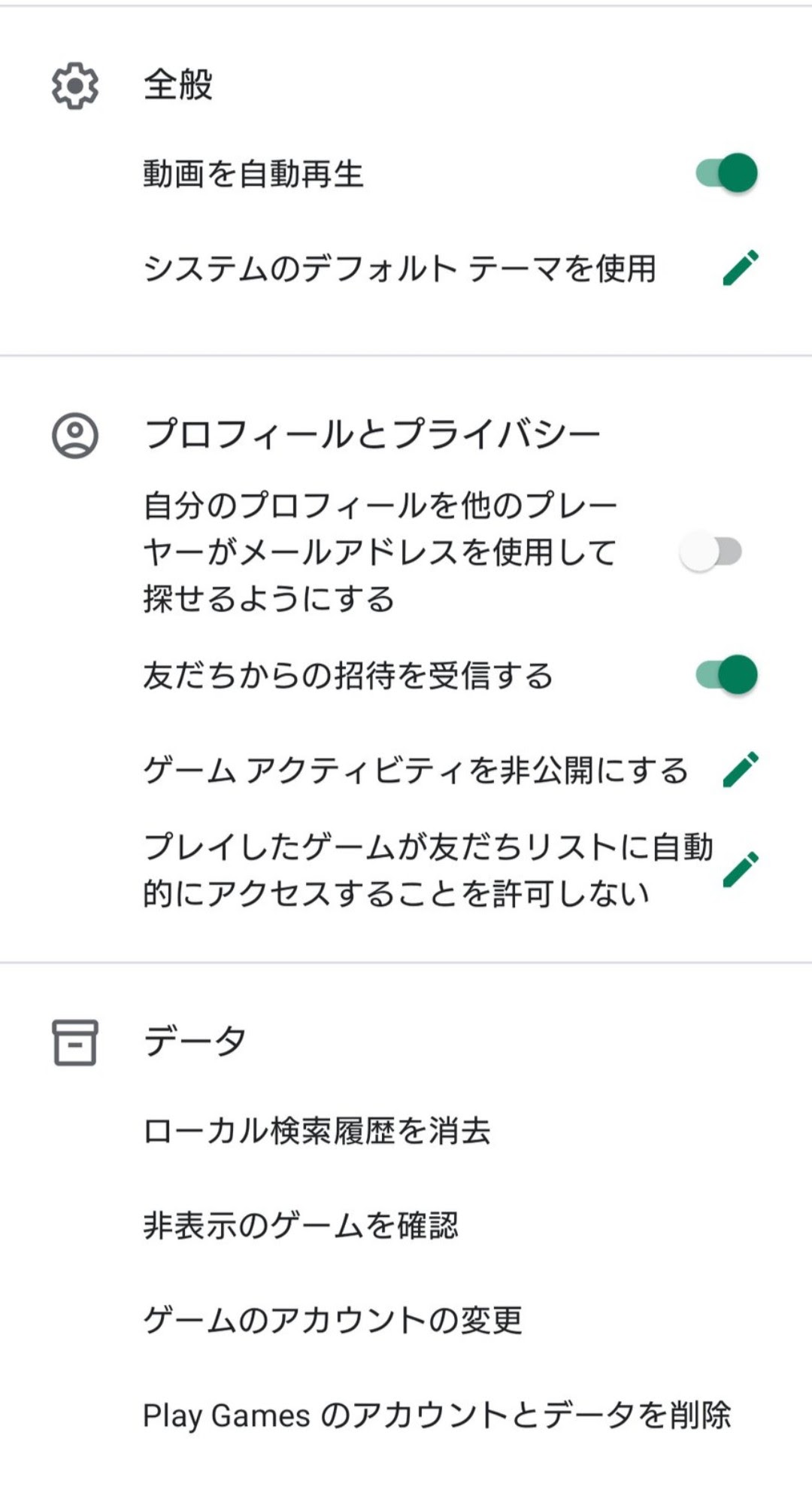 Play Games プロフィール設定: プライバシーとアカウント管理