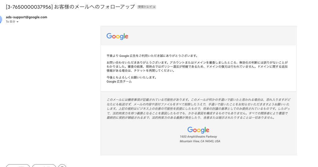 - 再審査リクエストの送信: Google 広告のサポートページから再審査を依頼するフォームを見つけて送信します。