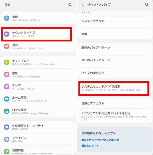 2. サウンドとバイブレーションの設定を探す